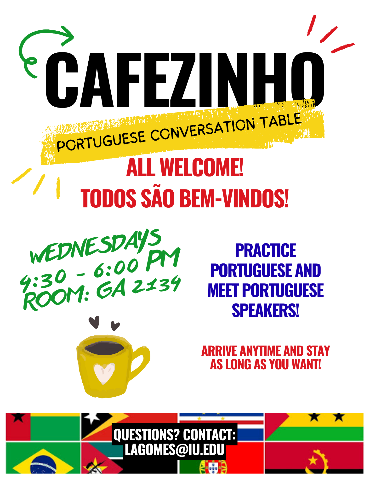 We offer three language-learning cafés: Café Hispano, Cafezinho, and Café Catalá.